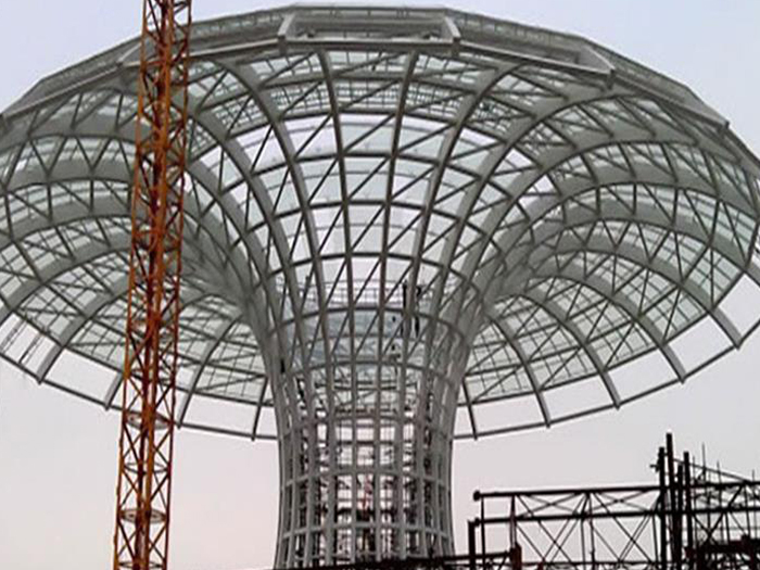 二、球形网架结构因其结构新颖,受力合理,自重轻、用钢量低等优点。如大型体育场馆球形六安螺栓球网架、公共场馆球形网架、电厂六安螺栓球网架、水泥工业球形网架、仓储物流球形网架、六安干煤棚工业球形网架、六安收费站六安加油站球形网架、展览中心、影剧院、商场、航站楼、候车厅、工厂六安车间、仓库、电视塔等球形螺栓球节点网架。国内球形网架结构主要分为:六安焊接球节点网架及螺栓球节点网架两种。螺栓球节点网架其构件工厂内加工量较大,现场安装便捷,适用于现场工期紧,六安施工条件、用电量受制约,网架形状复杂、六安杆件定位困难的异形结构。螺栓球节点球形网架系统基本由六安杆件、螺栓球、支撑支座等组成。按照节点形式可分为交叉六安桁架体系、四角锥体系、三角锥体系等。支撑方式多为固定支座支撑。对于大面积、大跨度及有特殊受力或伸缩要求的网架结构可采用橡胶支座、滑移支座、球铰支座等支撑形式,以满足结构自身的受力稳定、均衡,便于内力释放等设计要求。